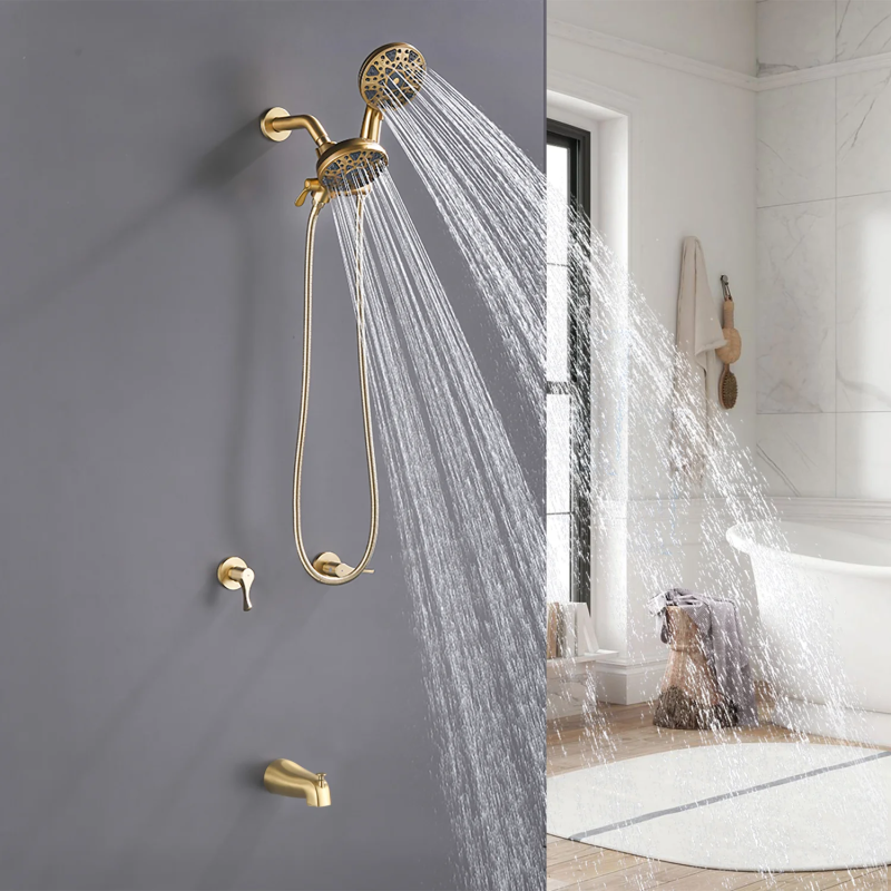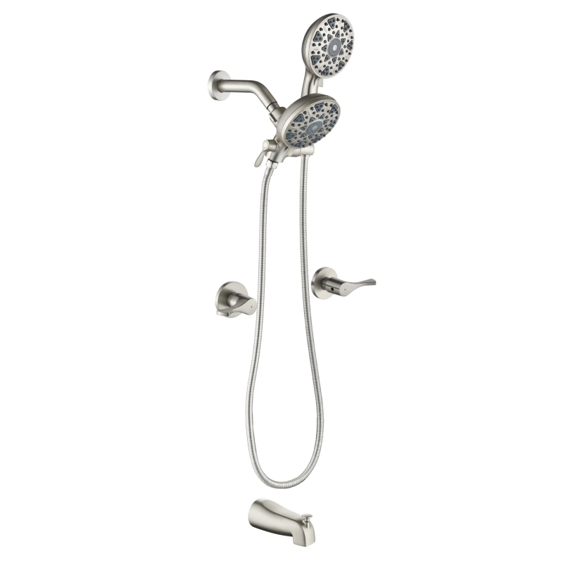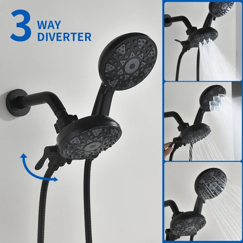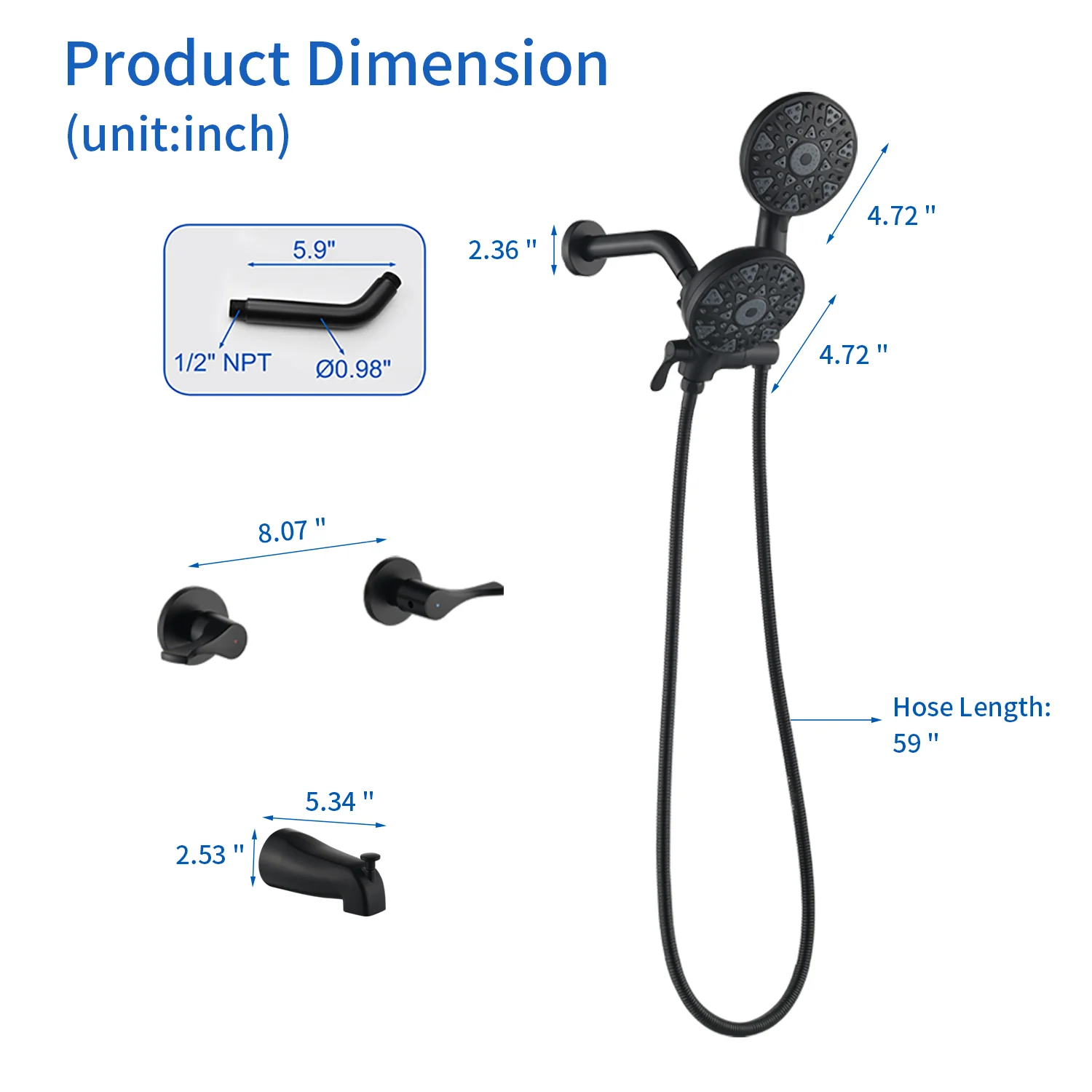 - Smooth, long lasting, drip-free operation ceramic disc cartridge, Single lever design for effortless flow and tempreture control; the modern and elegant shower head combo set can match all kinds of your bathroom decoration.
