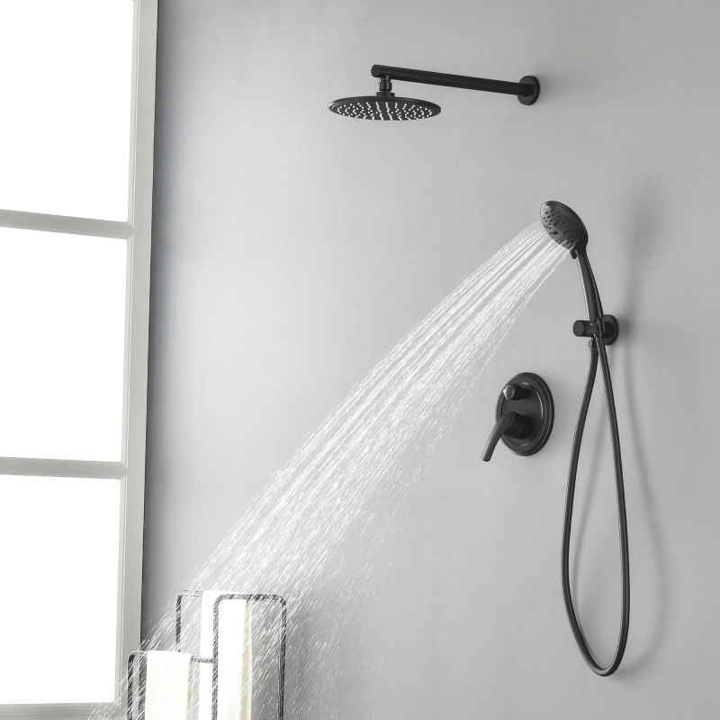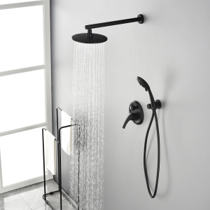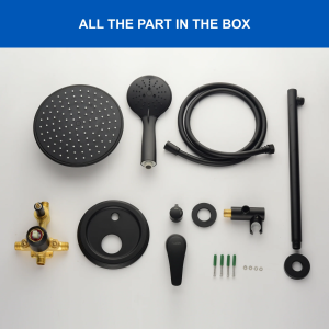 - Smooth, long lasting drip-free operation cUPC cceramic disc cartridge, Single lever design for effortless flow and tempreture control, Comes with solid brass shower valve, 12″ rainfall shower head, 5-funtion hand shower, 59″ shower hose, 15.7″extra long shower arm, shower holder and other installation necessary parts.