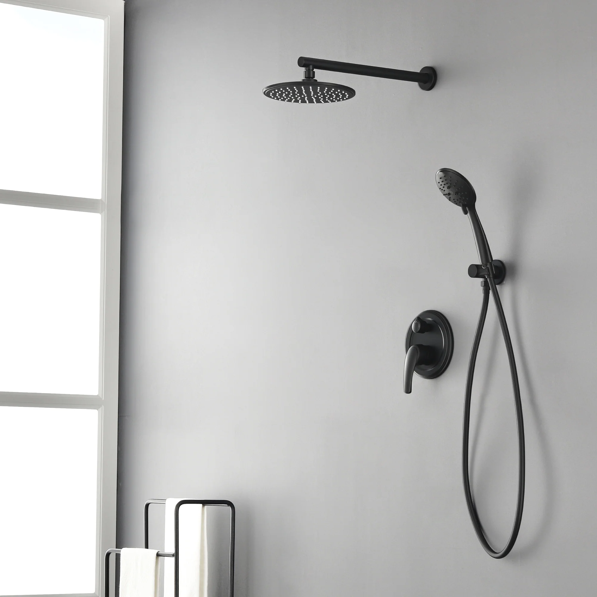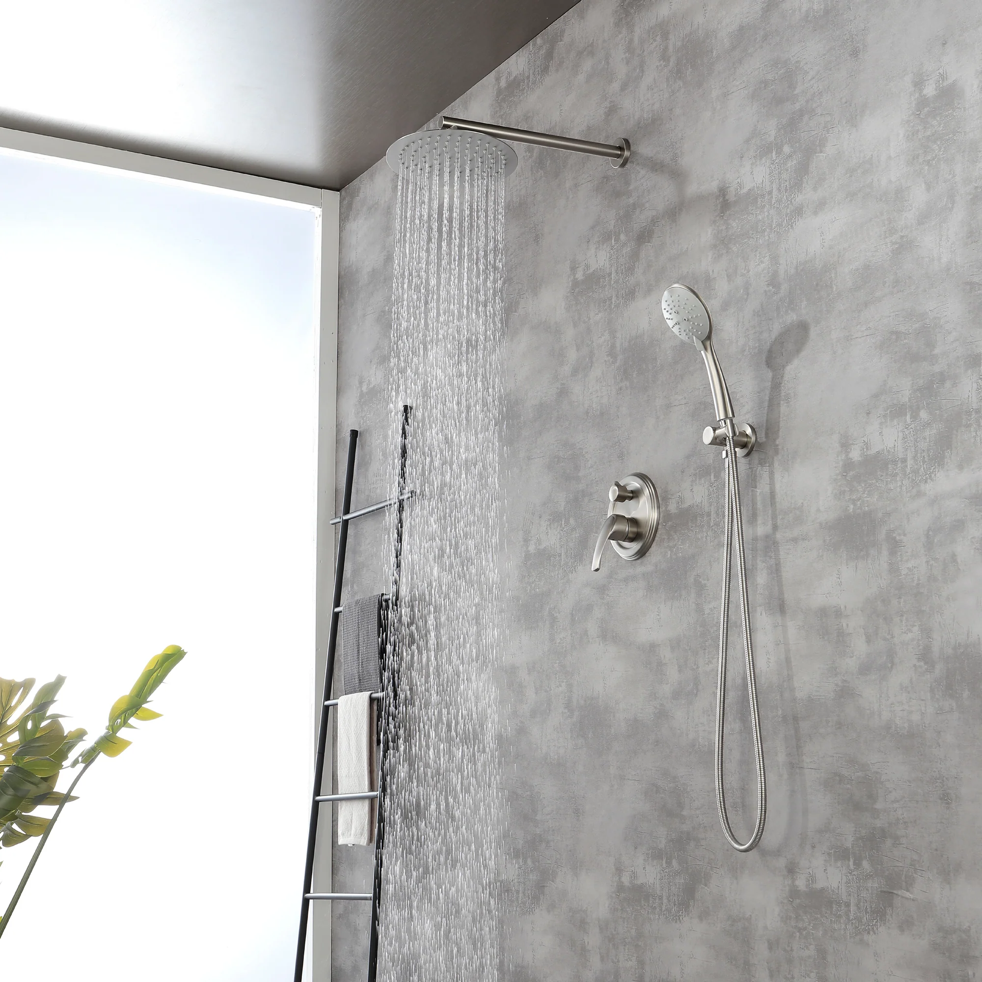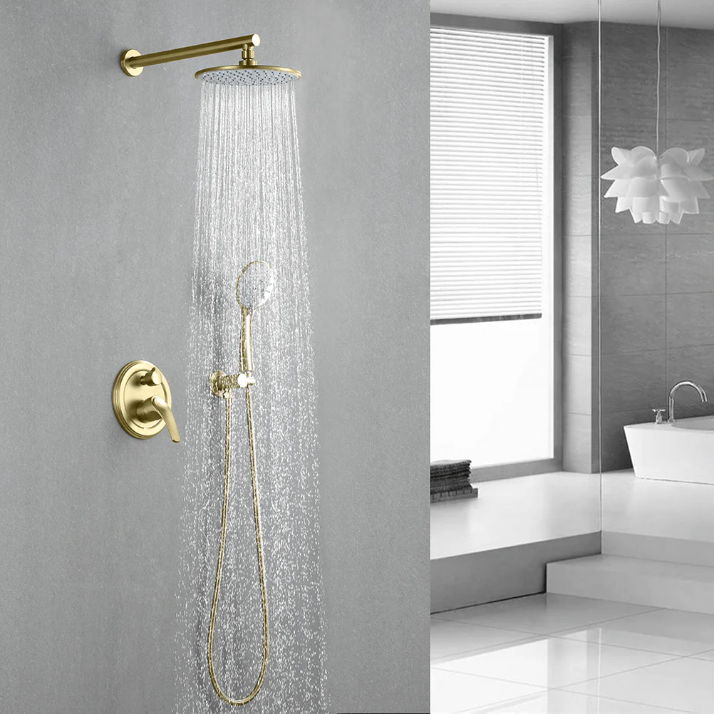 - Smooth, long lasting drip-free operation cUPC cceramic disc cartridge, Single lever design for effortless flow and tempreture control, Comes with solid brass shower valve, 12″ rainfall shower head, 5-funtion hand shower, 59″ shower hose, 15.7″extra long shower arm, shower holder and other installation necessary parts.