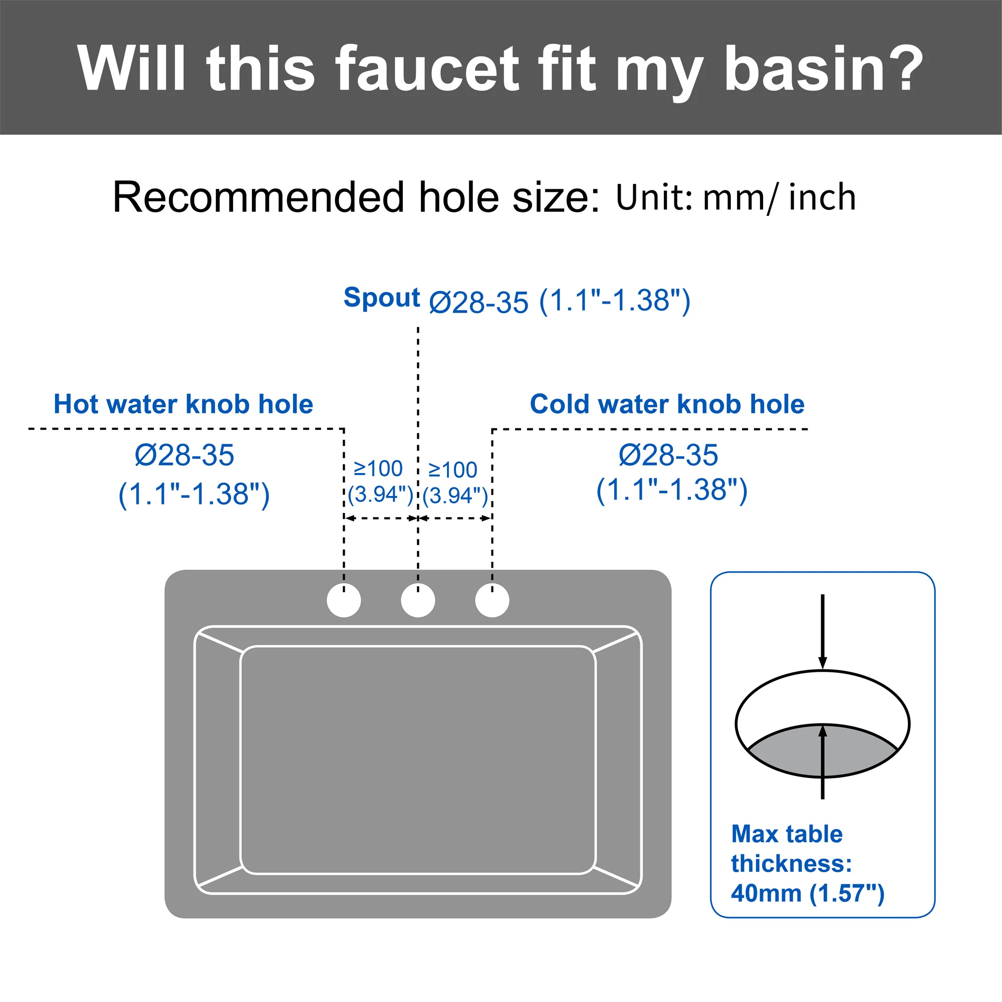 • We offer one year manufacturer warranty for our 3 holes bathroom faucet, if you have any questions or need any assist, don’t hesitate to contact us through email; By the way, we work from 8:30-11.30 PM(US TIME), 1:30-6:00 AM(US TIME), any asked questions, we can reply within 5 minutes.